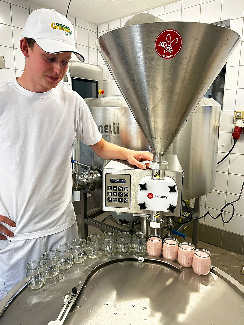 Griesserhof is an organic farm that has been producing its own yogurt for the past 20 years. As the need for different containers grew, they decided to invest in a filling machine. Now they fill between 130 g and 1000 g using the filling machine. :contentReference[oaicite:1]{index=1}