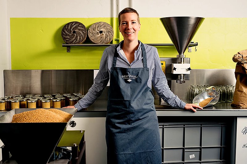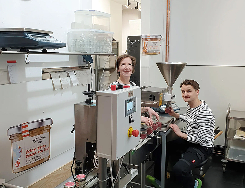 Senf Pauli was founded in 2008 by Eva Osterholz. The company has developed a wide range of products in mustard and sauce. In order to set up production as efficiently and professionally as possible from the start, they bought a DANA api MATIC 1000 with table stand in 2009.
